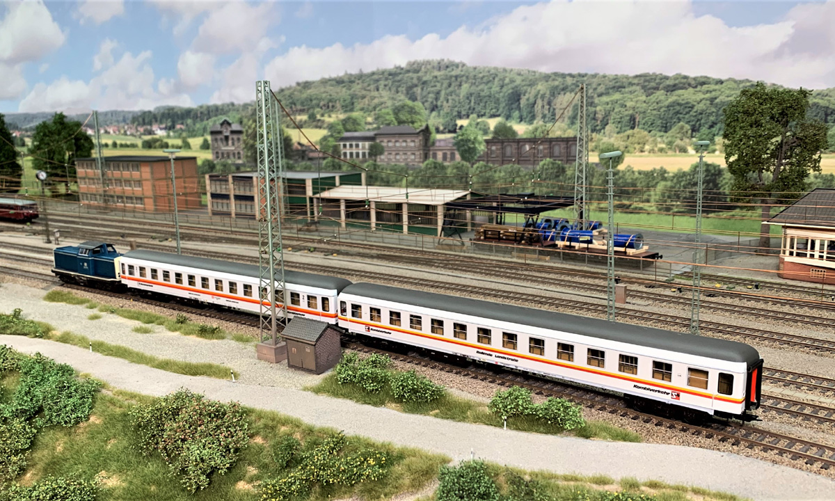 2 Liegewagen des Typs Bcm 247 “Rollende Landstraße für den Einsatz z.B. im Nahverkehr. Lieferung in stabiler Klarsicht- Faltschachtel.