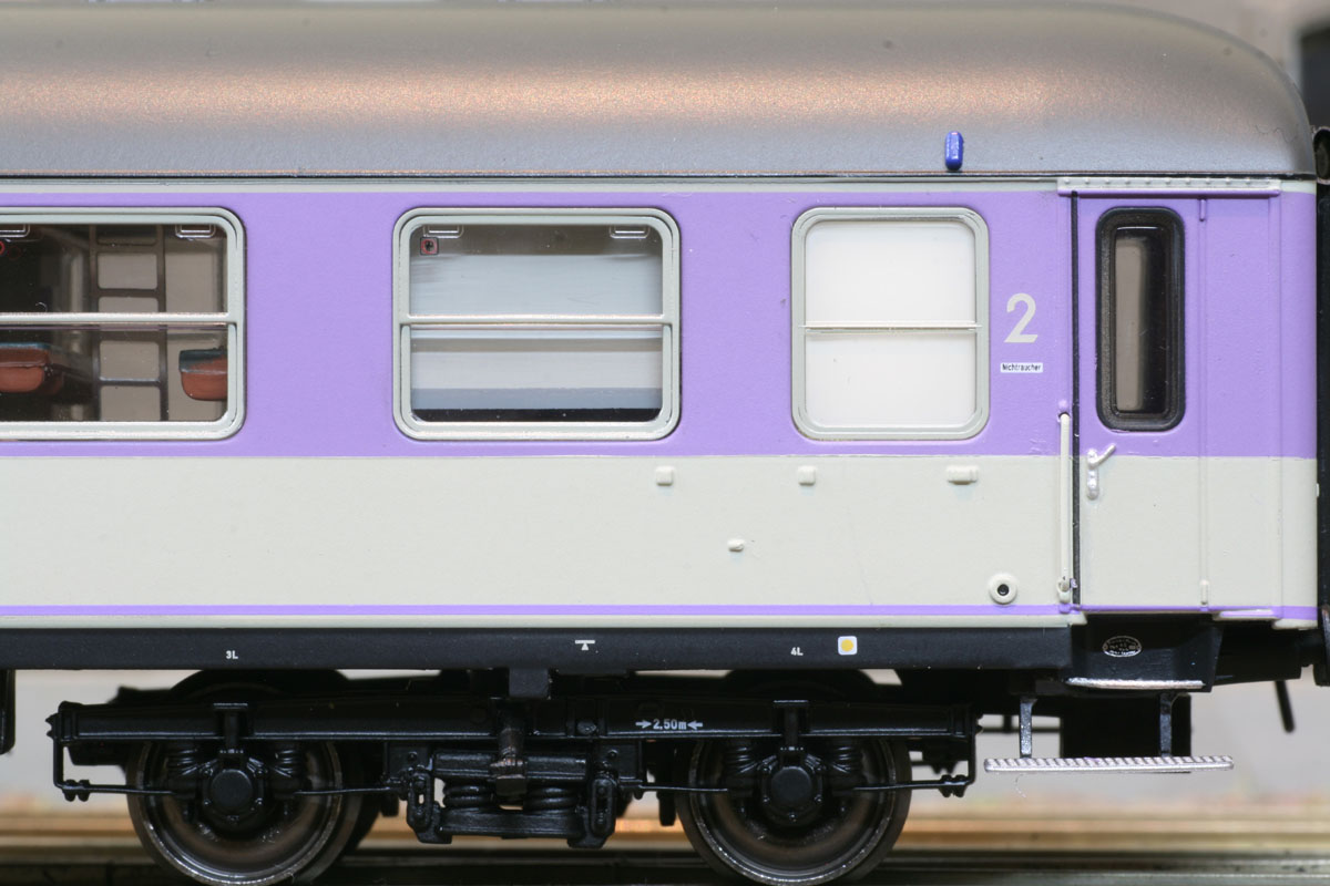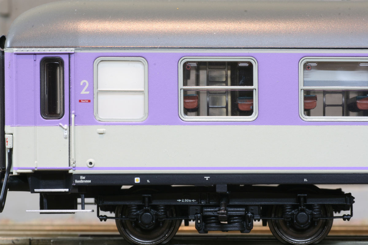 3-tlg. “Pop”- Wagenset bestehend aus 1x WLABm 174 (München- Kassel- Drehgestelle) pop rot, 1x Bcüm 243 pop rotviolett und 1x Bcüm 243 pop blauviolett