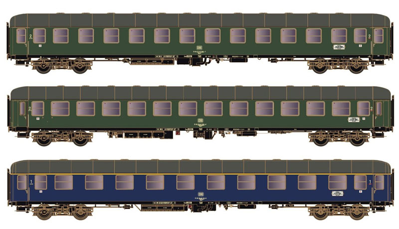 3tlg. Wagenset des D 1213 (Dortmund – Oberstdorf) bestehend aus 1x Bm 232 (2. Klasse), 1x Büm 234 (2. Klasse) und 1x Aüm 202 (1. Klasse), Ep IV
