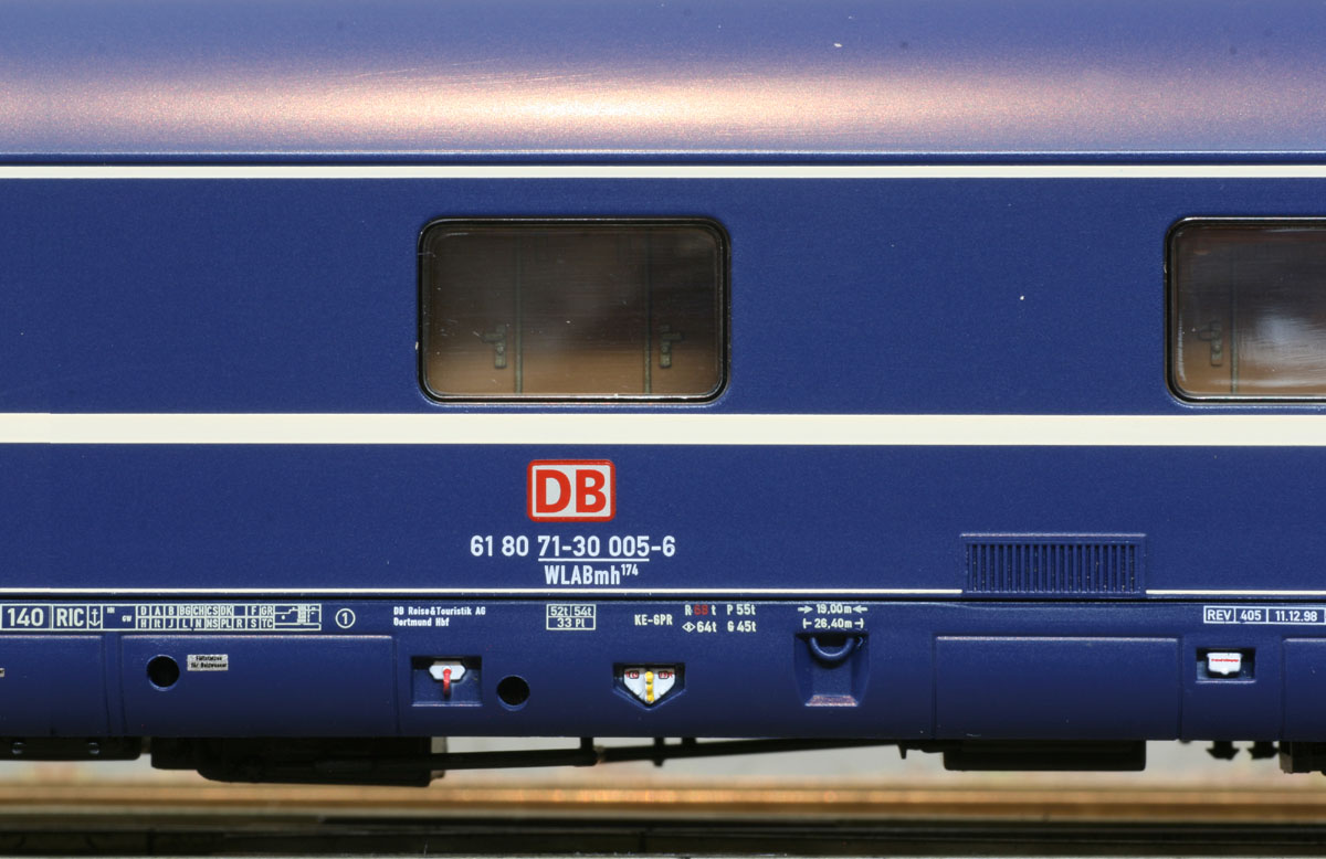 4- tlg. “Ferienexpress” Hamburg-Venedig bestehend aus 1 WLABm 174 (München- Kassel- Drehgestelle) und 3 Bcmh 246 (2x Klotzbremser, 1x Scheibenbremser) der DB. Ep V.