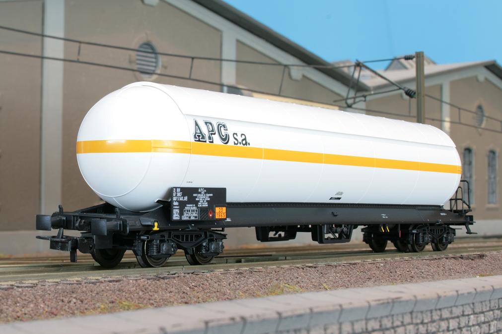 4-achsiger Kesselwagen mit Sonnenschutzdach eingestellt bei der SNCF, “APC s.a.”, weiss, Ep. IV