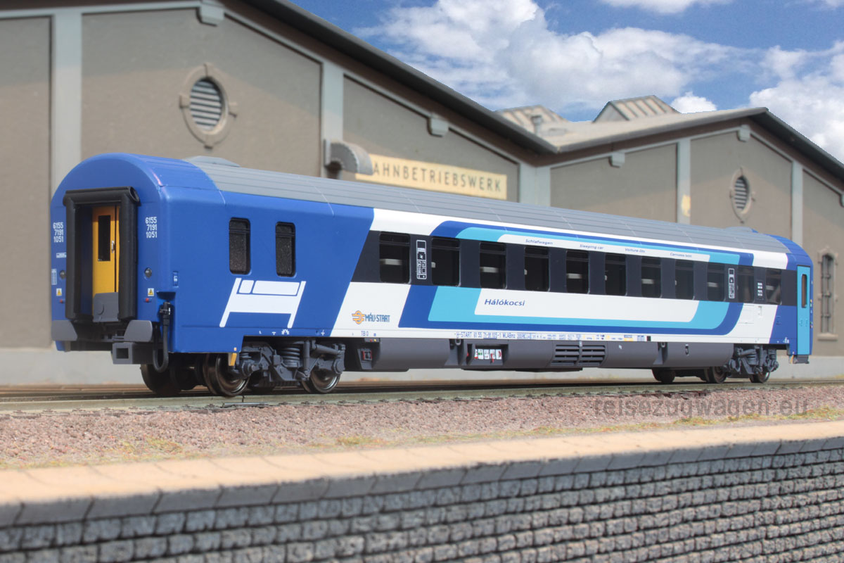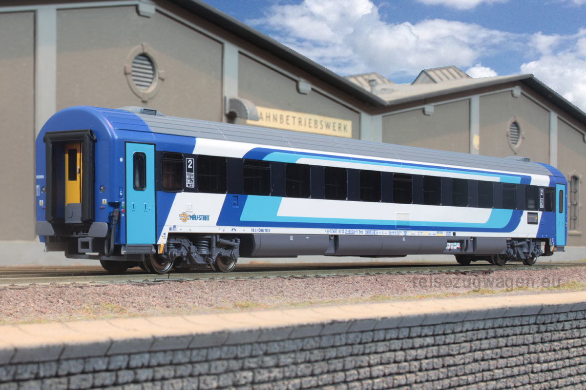 3-tlg. Wagenset des EN 50462 (Budapest-Keleti – Zürich HB) bestehend aus je 1x Bcmz 123.1, 1x Bmz und 1x WLABmz der MAV START, Ep VI