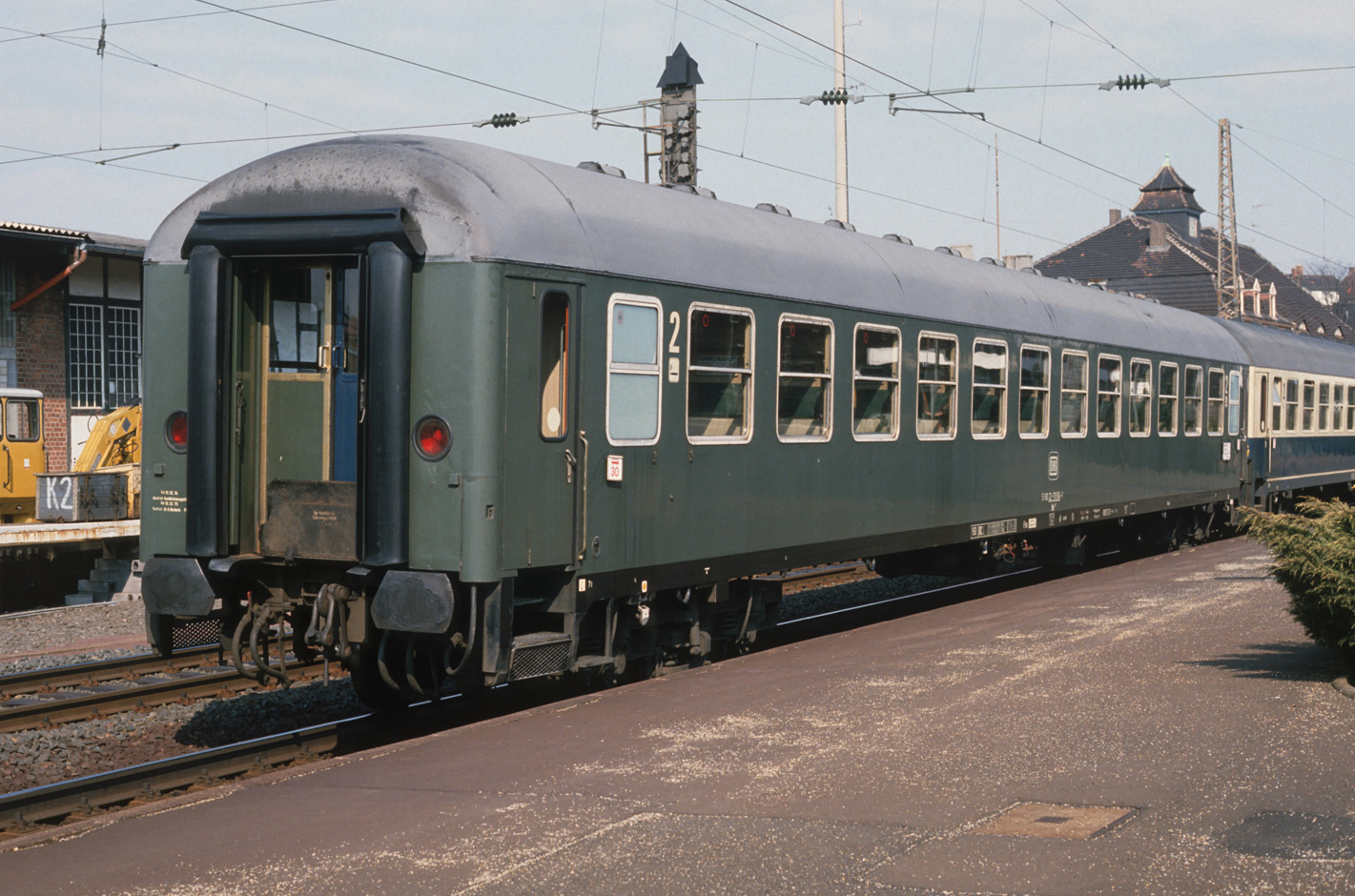 2-tlg. Wagenset des D 274 “Nordpfeil” (Hamburg Altona-Aarhus) bestehend aus 2x 2. Klasse Abteilwagen Bm 234 in grün (70 504) und 1x Bm 234 (80 008) mit Klotz- und MG- Bremse (160 km/h). Beide Wagen mit Piktogrammbeschriftung und Klapptrittstufen, Ep V