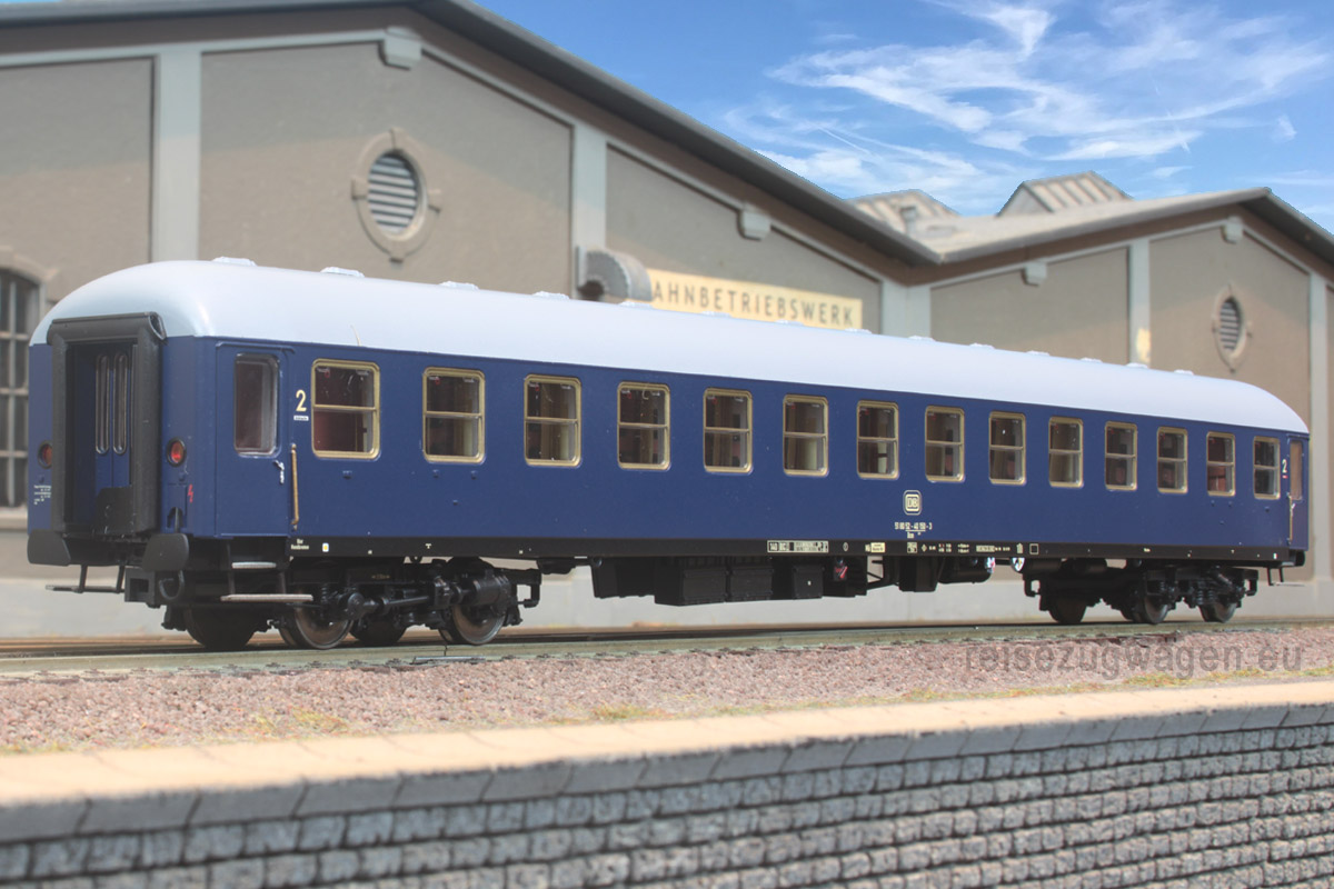 Liegewagen der Bauart Bcm 241, blau, Ep IV. Einzelwagen aus Set, Lieferung in stabiler Klarsicht- Faltschachtel.