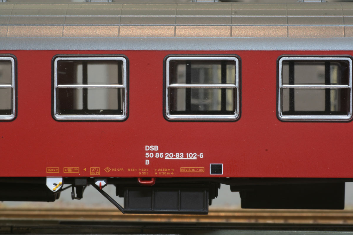 4-tlg. Wagenset “InterCity” der DSB, bestehend aus 1x A (Typ Y), 1x Bk (Kioskwagen), 2x B (Typ Y). Alle Wagen mit nationalen Nummern.