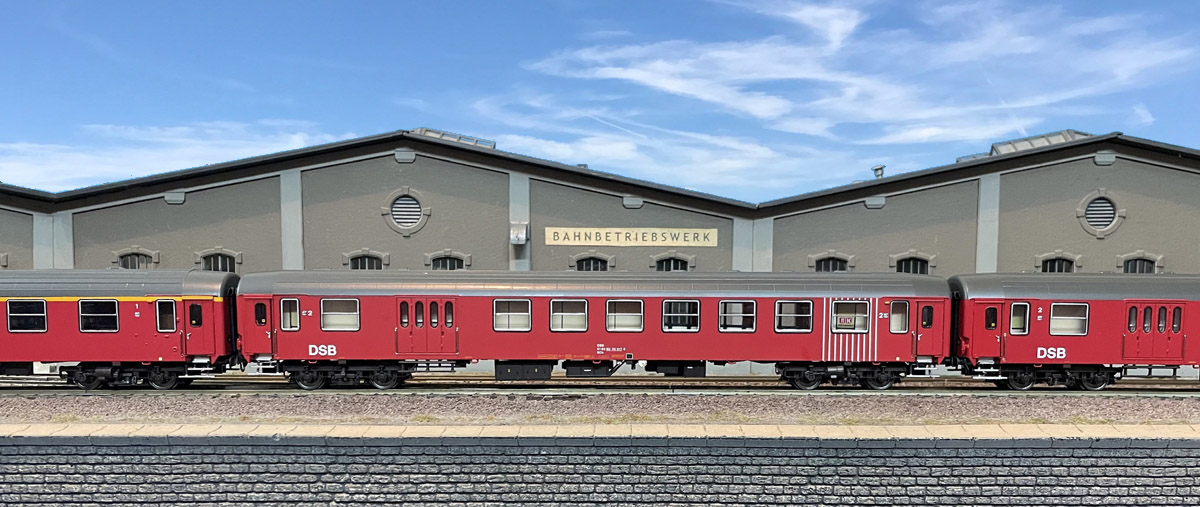 2. Klasse/Gepäckwagen mit Kiosk (Typ UIC-Y) der DSB, Ergänzungswagen zu 90271 “Nordpfeil/Nordpilen” (Fahrplanlage Ende 1980er Jahre) mit beiliegenden Zuglaufschildern, Ep V