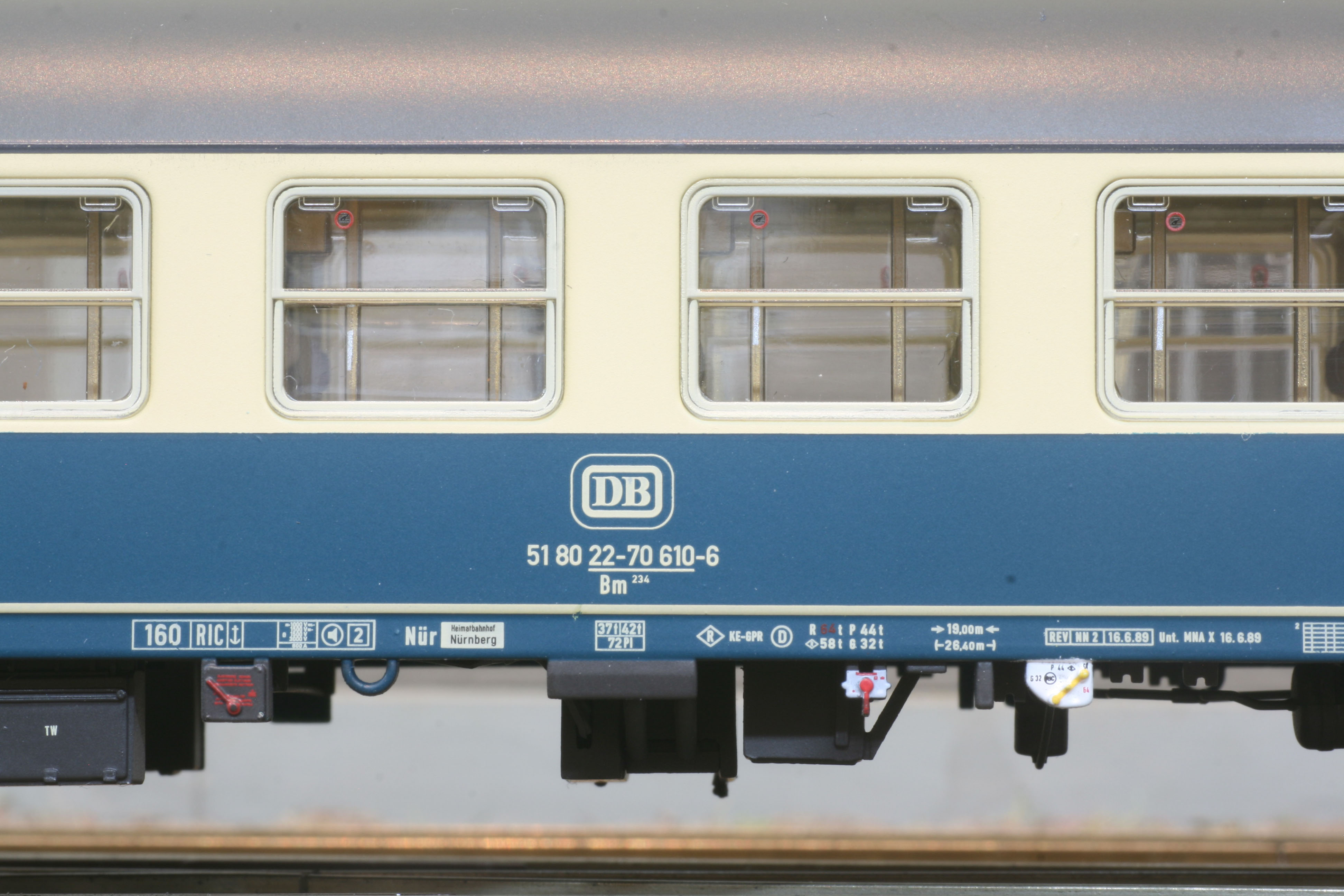 Bm 234 Schnellzugwagen der DB, Klaptrittbretter, Piktogrammbeschriftung, MD 364. Ep IV