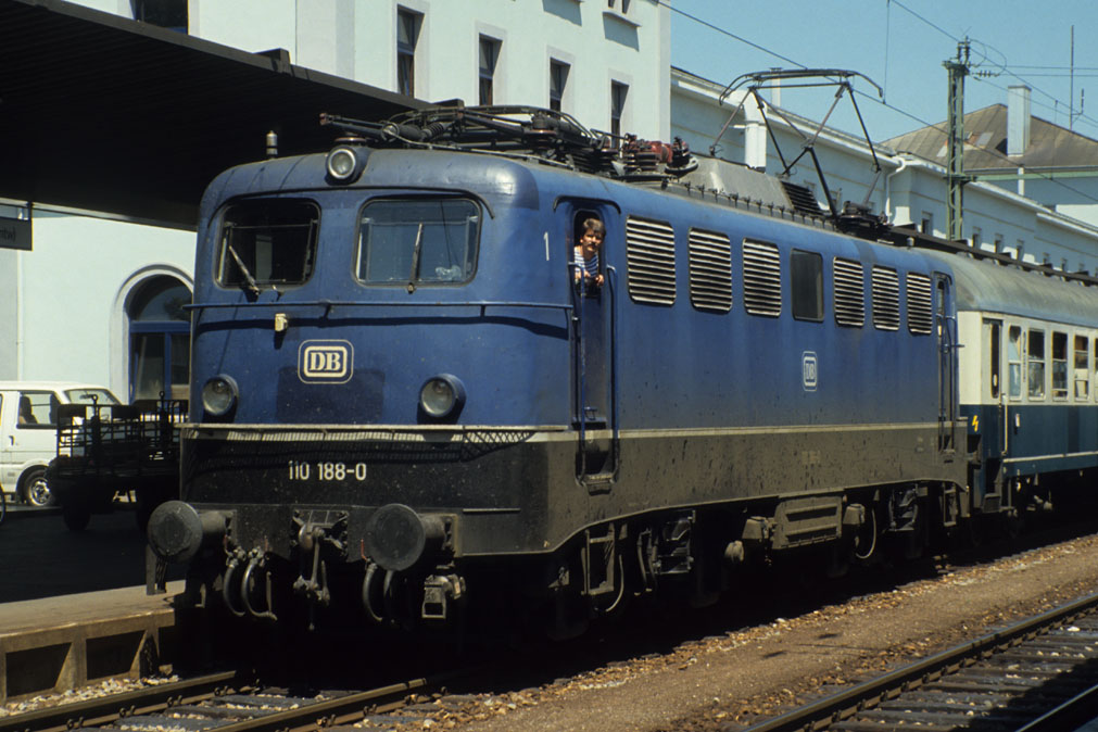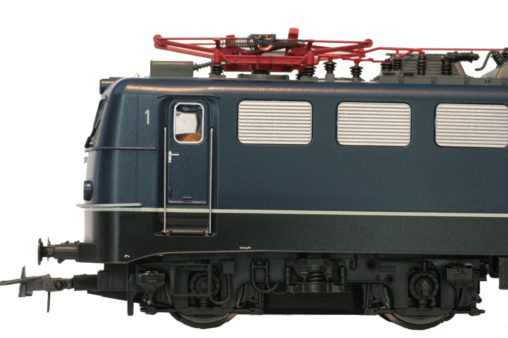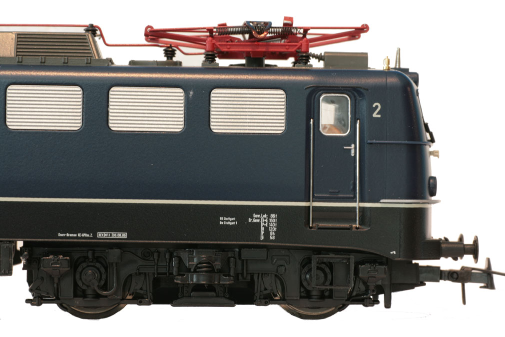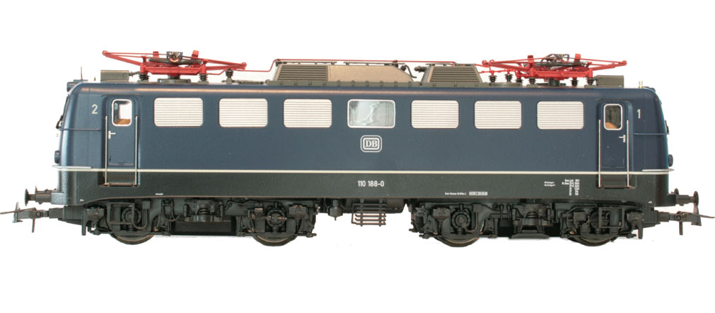 Modell einer Schnellzuglokomotive der Baureihe 110 der Deutschen Bundesbahn. Die Lackierung und Beschriftung entspricht der Ep. IV.Neu, OVP