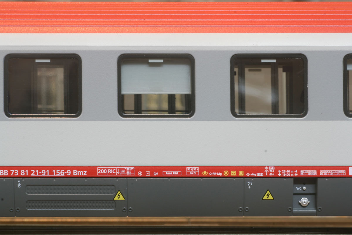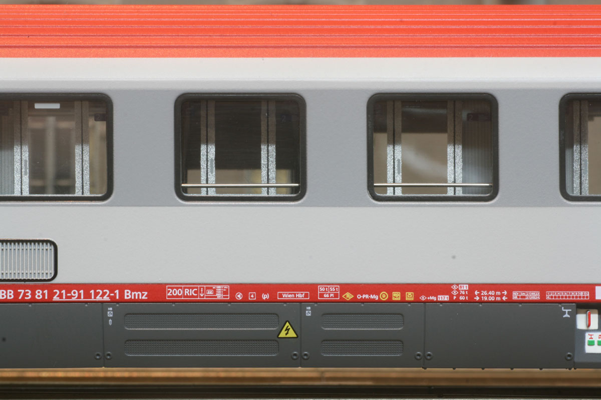 4-tlg. Wagenset “NightJet” der ÖBB bestehend aus 1x Schlafwagen WLABmz (173), 1x Liegewagen Bcmz (59-90.0) und 2x 2. Klasse Abteilwagen Bmz (21-91.1) , Ep VI