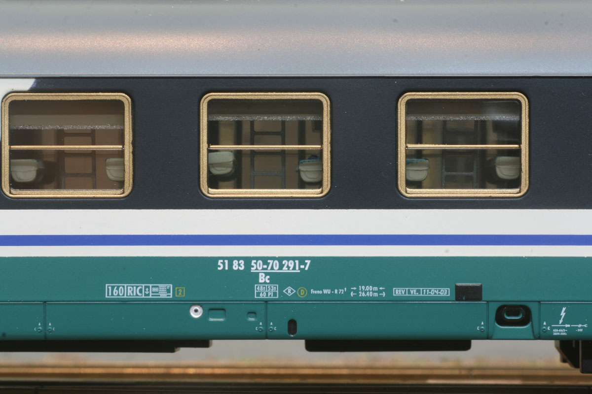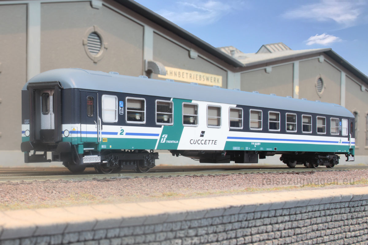 2-tlg. Wagenset “TrenoNotte” der FS bestehend aus 2 Bc (Typ UIC-X) mit unterschiedlicher Ausführung. XMPR- Lackierung, Ep V.