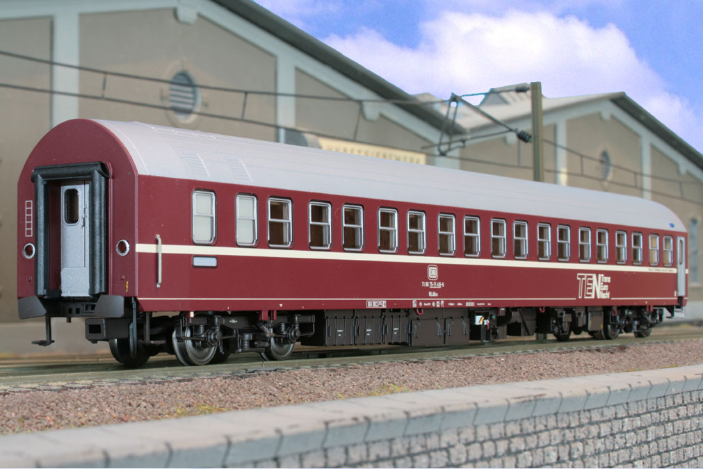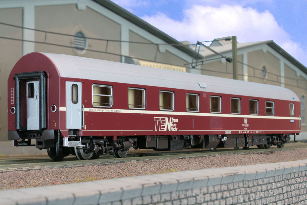 DB-Schlafwagen der Bauart WLABsm 166 ( T2S ), rot, Ep. IV