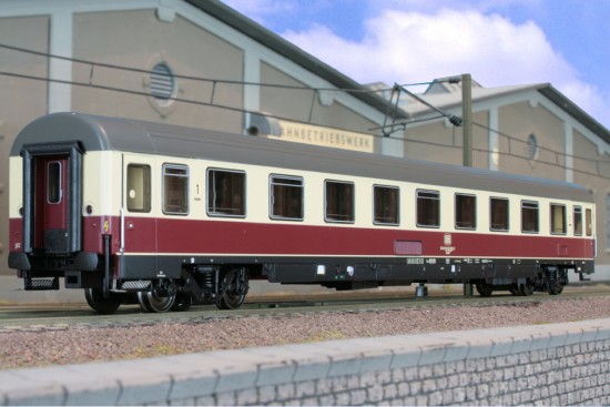 1. Klasse IC/EC-Abteilwagen der Bauart Avmz 207 mit schwarzer Schürze.