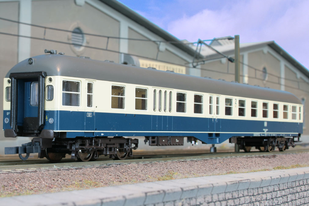 2. Klasse Mitteleinstiegswagen mit Steuerabteil und Gepäckraum. Bauart BDylsf 456 in tü/be, Piktogramme, Ep. IVb.