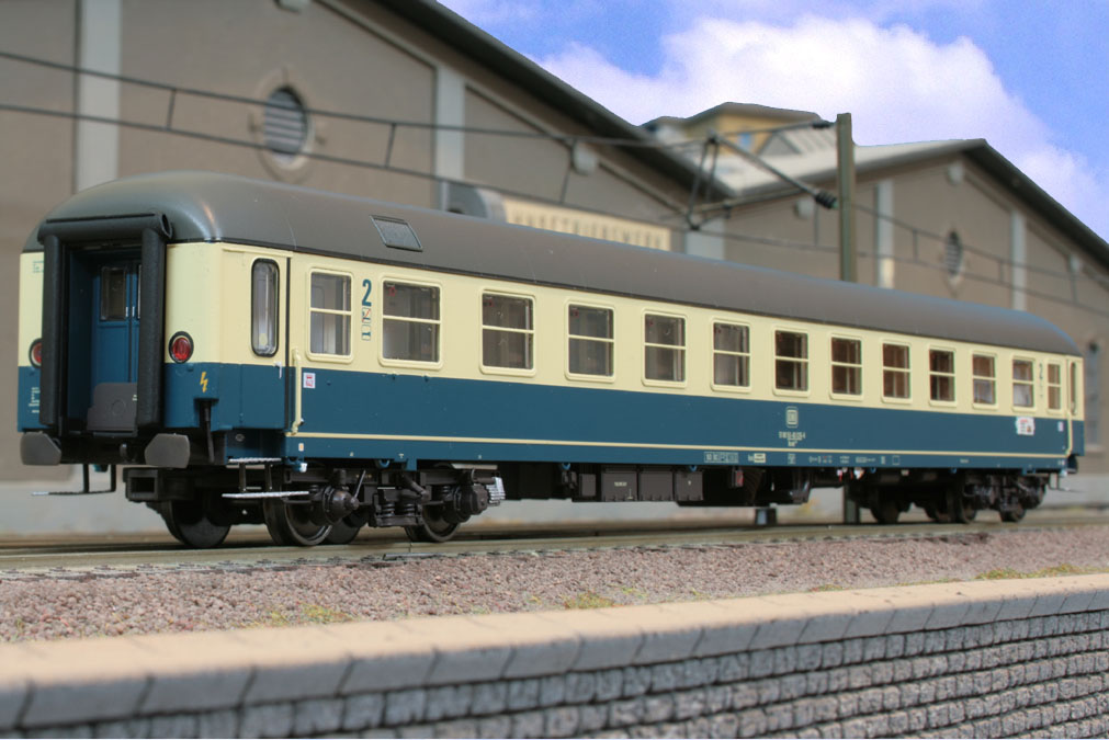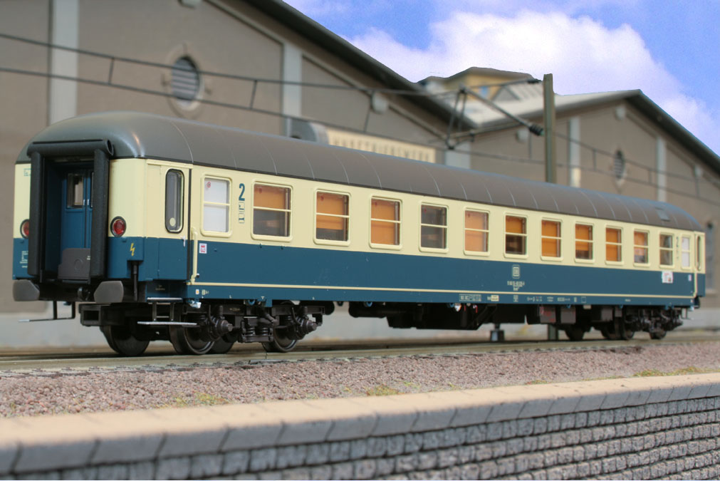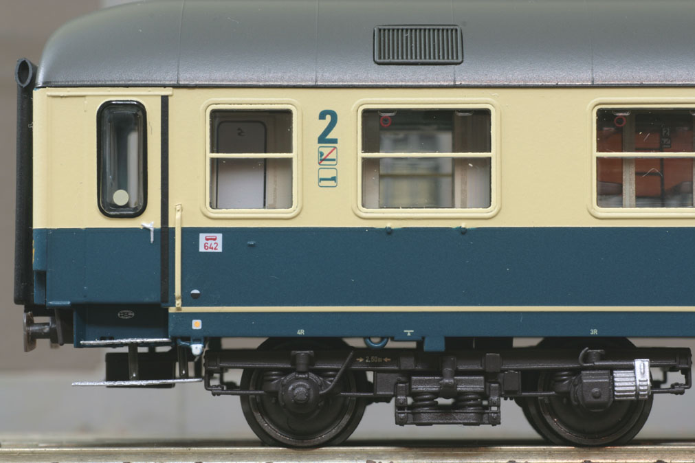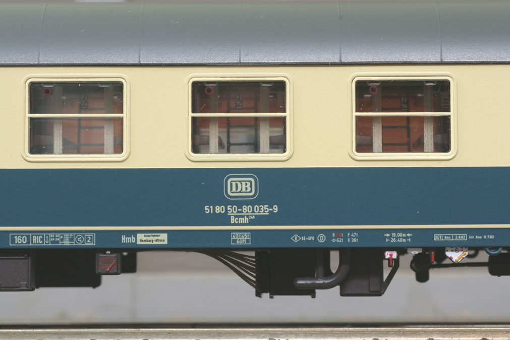 2er Set Liegewagen der Bauarten Bcm 243 und Bcmh 246. Die Lackierung und Beschriftung entspricht der Ep. IV, Beschilderung als “AlpenSeeExpress”.